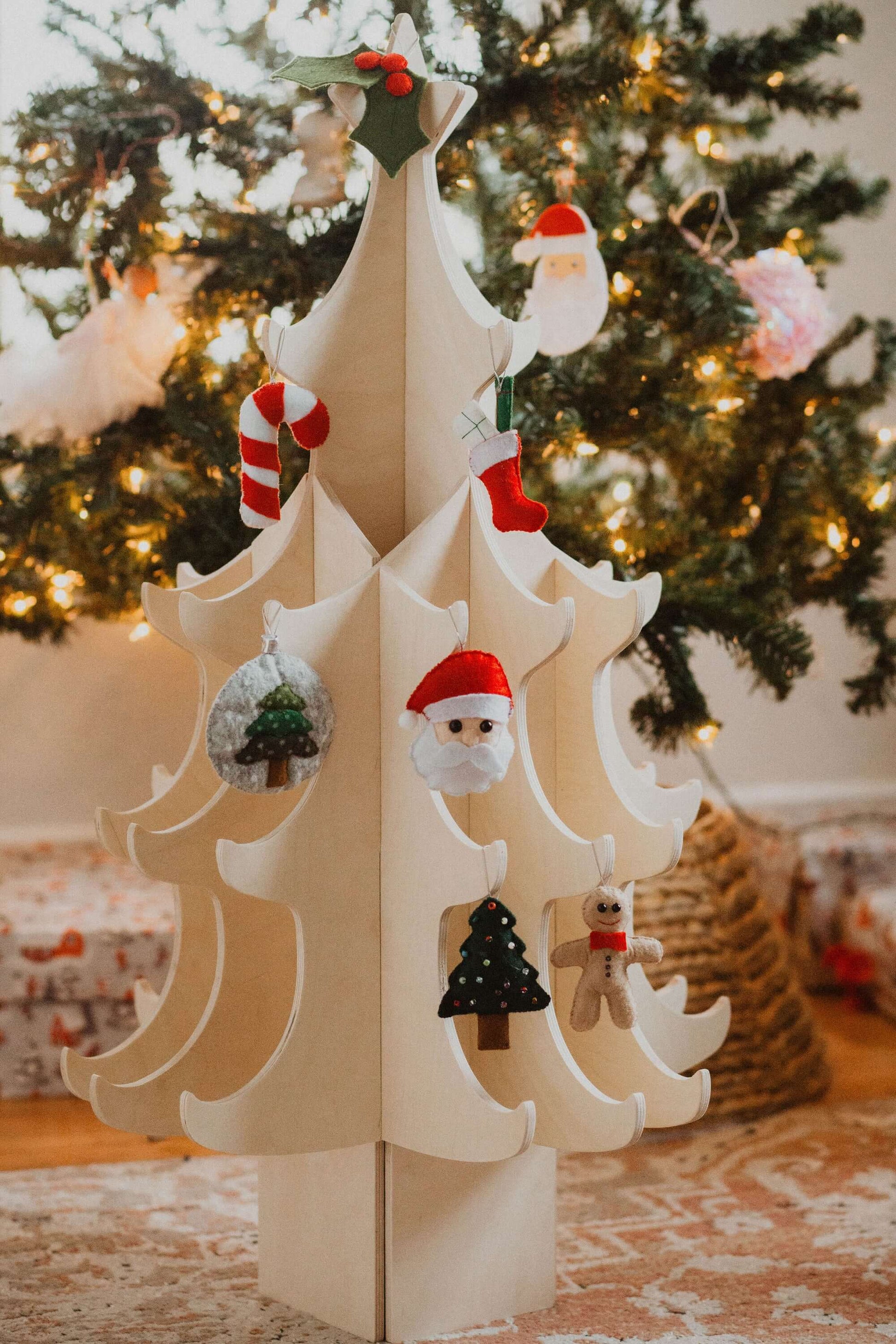 🎅 Tam Set: 1 Ahşap Yılbaşı Ağacı, 5 veya 10 keçe süsten oluşan el yapımı süsler.