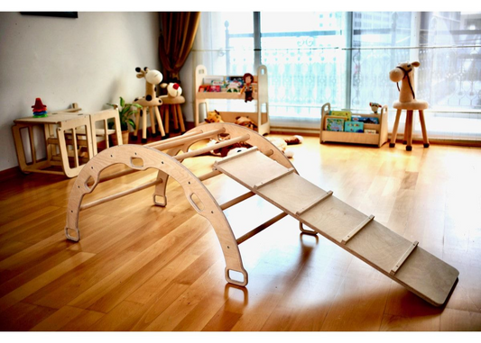 Katlanabilir Montessori Tırmanma Üçgeni Seti - Taşınabilir Çalışma Masası ve Sandalyeli